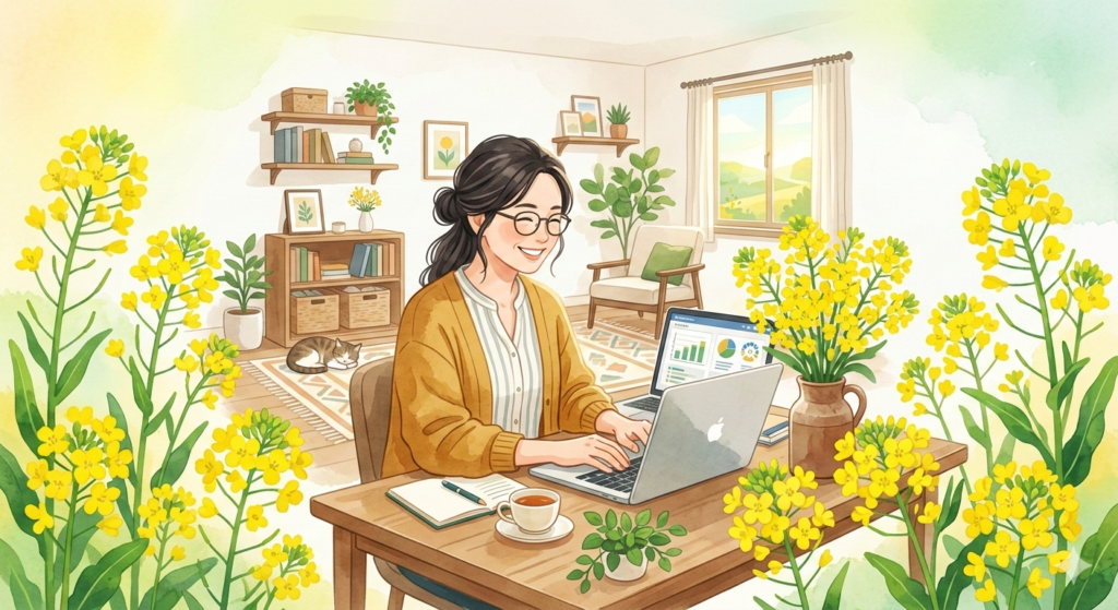 まとめとして、新しいことを始めるのに、遅すぎるということはありません。 菜の花が冬の寒さに耐えて春に黄色い花を咲かせるように、今のあなたの悩みや準備は、未来の自由な働き方を叶えるための大切なプロセスです。